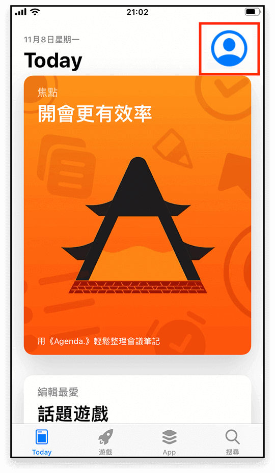 下载完成后,在 App Store 中点击 <右上角图标> 然后 <滑倒底部> 登出账号;